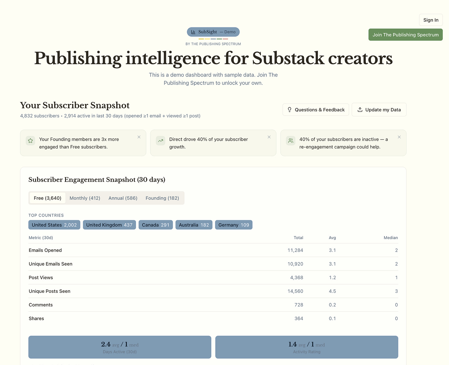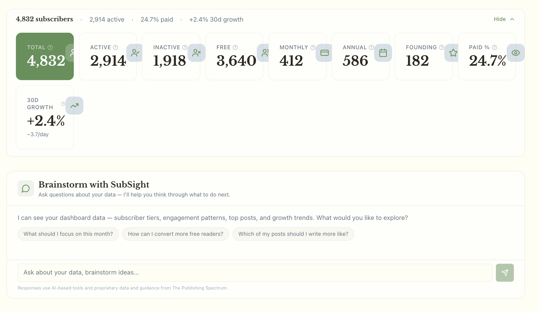 SubSight exists because across every publication I’ve analyzed, I kept finding the same thing: